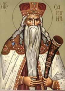 Ἐκ στείρας ἐβλάστησας, δικαιοσύνης καρπός, προφαίνων τὴν μέλλουσαν, εὐεργεσίαν ἠμίν, Σαμουὴλ θεσπέσιε ὅθεν ἱερατεύσας, παιδιόθεν Κυρίω, ἔχρισας ὡς Προφήτης, Βασιλεῖς θείω μύρω. Καὶ νῦν τῶν σὲ εὐφημούντων, μάκαρ μνημόνευε.