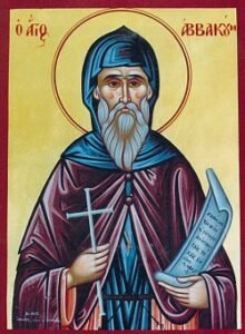Ὡς ἵππους ἑώρακας τοὺς ἱεροὺς Μαθητάς, θαλάσσας ταράσσοντας, τῆς ἀγνωσίας σαφῶς, καὶ πλάνην βυθίζοντας, δόγμασιν εὐσεβείας, Ἀββακοὺμ θεηγόρε· ὅθεν σε ὡς Προφήτην, ἀληθῆ εὐφημοῦμεν, αἰτούμενοι τοῦ πρεσβεύειν ἐλεηθῆναι ἡμᾶς.