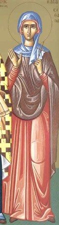 Ἡ δὲ θυγατέρα της, ἡ Ἁγία Εὐθαλία, ἔκανε δριμύτατη παρατήρηση στὸν ἀδελφό της, ποὺ θέλησε νὰ σκοτώσει τὴν μητέρα τους. Αὐτὸς δὲ τῆς εἶπε: «Μήπως καὶ σὺ εἶσαι Χριστιανή;». Ἡ Ἁγία ἀποκρίθηκε: «Ναί, Χριστιανὴ εἶμαι καὶ γιὰ τὸν Χριστὸ εἶμαι ἕτοιμη νὰ πεθάνω πρόθυμα». Τότε ὁ αἰσχρὸς ἀδελφός της, ἀφοῦ τὴν ἔδειρε δυνατά, ἔπειτα τὴν παρέδωσε σ᾿ ἕναν δοῦλο του νὰ τὴν βιάσει. Προσευχομένη τότε ἡ Ἁγία τύφλωσε τὸν δοῦλο. Ὁ δὲ ἀδελφός της μόλις εἶδε τὸ γεγονός, σὰν ἄλλος Κάϊν, ἀποκεφάλισε τὴν ἀδελφή του καὶ ἔτσι ἡ μακαρία πῆρε τὸ ἀμάραντο στεφάνι τοῦ μαρτυρίου.