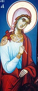 Ἀκυλίναν τὴν θείαν ἀνευφημήσωμεν, οἴα θεόφρονα κόρην καὶ Ἀθληφόρον Χριστοῦ, τὴ ἀγάπη γὰρ αὐτοῦ πίστει ἠνδρίσατο, καὶ καθεῖλε τὸν ἐχθρόν, δι\’ ἀγώνων ἱερῶν καὶ δόξης τυχοῦσα θείας Χριστῷ τῷ Λόγῳ πρεσβεύει, ἐλεηθήναι τᾶς ψυχᾶς ἠμῶν.