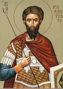 Κάλλος εὐσεβείας ὑπερφερές, Καλλίστρατε Μάρτυς, ἐν ἀγῶσι καρποφόρων, πρὸς θεογνωσίας, τὴν καλλονὴν ἰθύνεις, ἀθλητικὴν χορείαν, μεθ’ ἧς τιμῶμέν σε.
