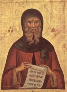 Τούς βιωτικούς θορύβους ἀπωσάμενος, ἡσυχαστικῶς τόν βίον ἐξετέλεσας, τόν Βαπτιστήν μιμούμενος, κατά πάντα τρόπον Ὁσιώτατε. Σύν αὐτῷ οὖν σέ γεραίρομεν, Ἀντώνιε Πάτερ, τῶν Πατέρων κρηπίς.