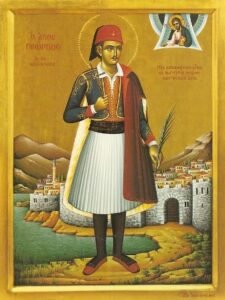 Τόν πανευφημον Μαρτυν Χριστου Γεωργιον, Ἰωαννινων τό κλέος καί πολιουχον λαμπρων, ἕν ὠδαις πνευματικαϊς ἀνευφημησωμεν ὀτι ἐνηθλησε στερρως καί κατηνεγκεν ἐχθρον, τοῦ Πνευματος τή δυναμει καί νύν ἀπαυστως πρεσβευει, ἐλεηθηναι τάς ψυχας ἠμων.