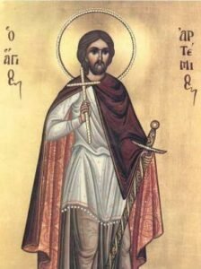 Εὐσέβείας τοῖς τρόποις καλλωπιζόμενος, ἀθλητικῆς ἀγλαΐας ὤφθης σοφέ κοινωνός, πρὸς ἀγῶνας ἀνδρικούς παραταξάμενος· ὅθεν ὡς λύχνος φωταυγής, τῶν θαυμάτων τὰς βολάς, ἐκλάμπεις τῇ οἰκουμένῃ, Ἀρτέμιε Ἀθλοφόρε, πρὸς σωτηρίαν τῶν ψυχῶν ἡμῶν.